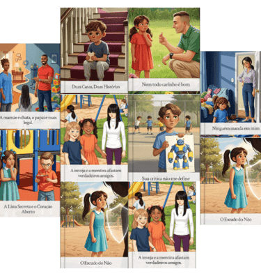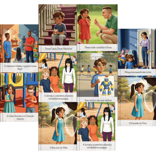 Apresento as 10 Histórias Poderosas em vídeo com método que cada história foi criada para revelar exatamente aquilo que seu filho sente mas não sabe explicar e ele absorve de forma natural, leve e sem resistência.